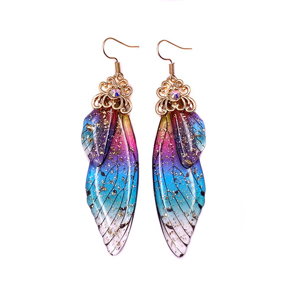 Design: Handgefertigte Statement-Ohrringe mit Kristallfee-Schmetterlingsfolienflocken-Flügel