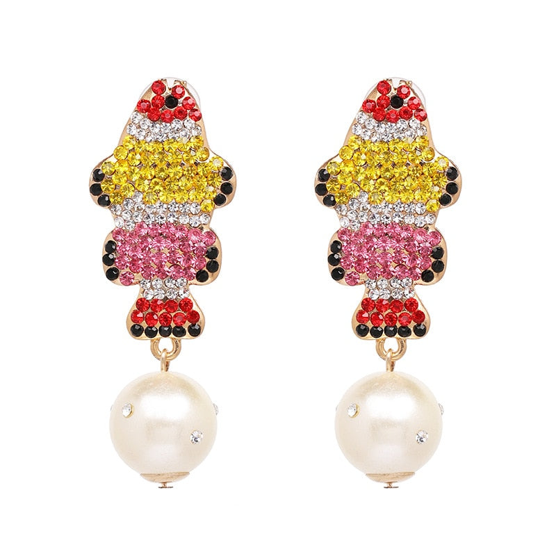 Design: Statement-Ohrringe mit baumelnden Perlen und Kristallfischen