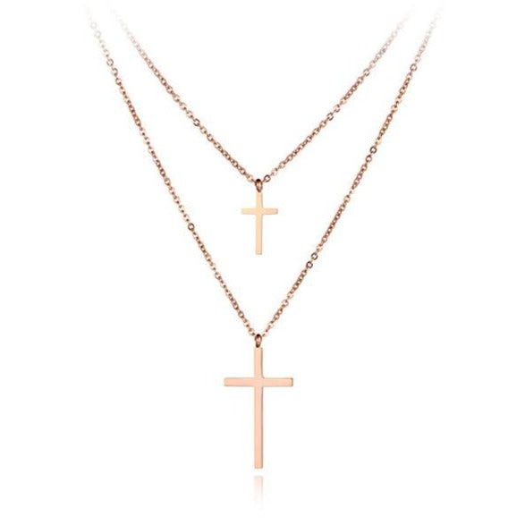 Design: Doppellagiger Kreuzanhänger an einer Gliederkette, Chokerhalskette