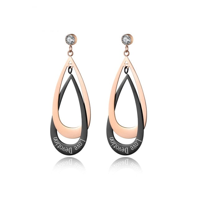 Design: Tropfenförmige Statement-Ohrringe mit dem Wort „Love Devotion“