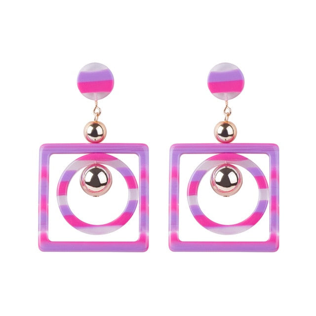 Design: Geometrisch verbundene quadratische und kreisförmige Tropfen-Ohrringe