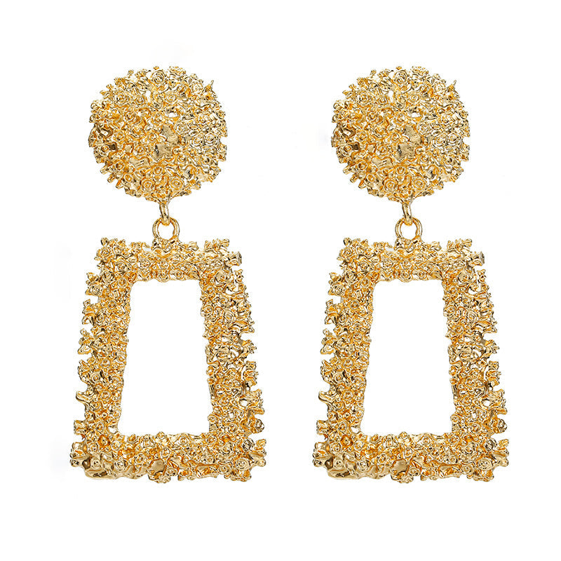 Design: Statement-Ohrclips in geometrischer Form mit baumelnden Tropfen