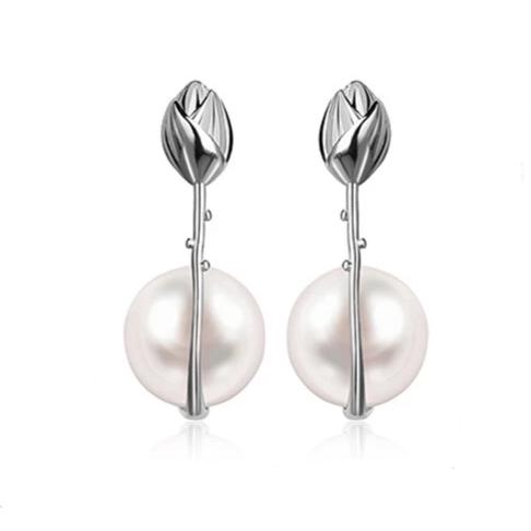 Design:Handmade Lotus Flower with White Natural Mother of Pearl Stud Drop Earring