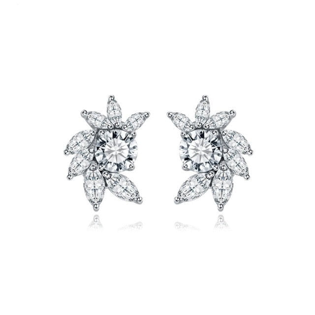 Design: Crystal Flower with Leaves Stud Earrings