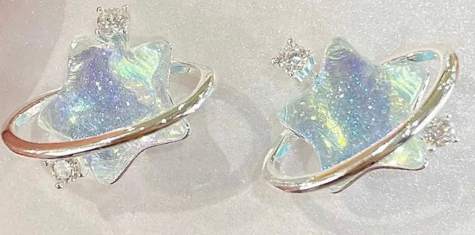 These Starry Orbit Earrings are the perfect combination of cute and stylish. Adorned with stars and sparkling gems. they'll add a touch of pretty to any outfit. The silver orbit design gives them a unique and playful twist. A must-have for any fashion-forward individual! �/p>