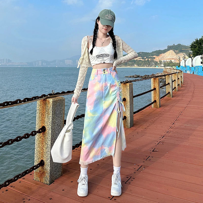 Unleash your inner fashionista with our Split Tie Irregular Midi Skirt. With a unique split and tie feature. this midi skirt is perfect for creating a cute and one-of-a-kind look. Choose your mood by getting it in a playful rainbow tie-dye design or a solid black color. Don't settle for ordinary style - stand out and make a statement with this skirt!