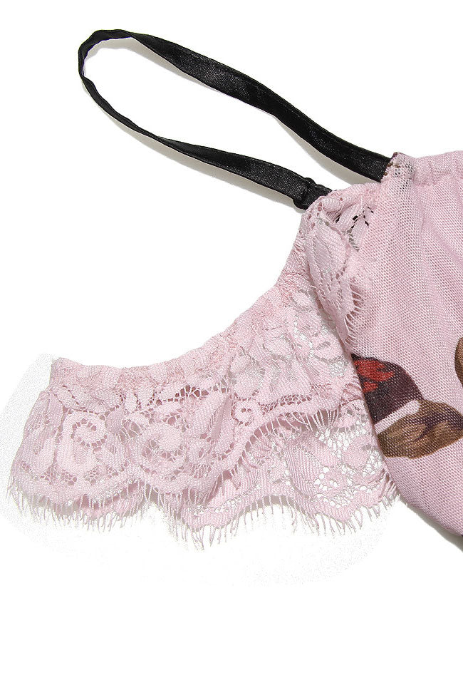 Vintage Ruffle Lace Trim Mesh High Waist Two Piece Maxi Dress - Floral