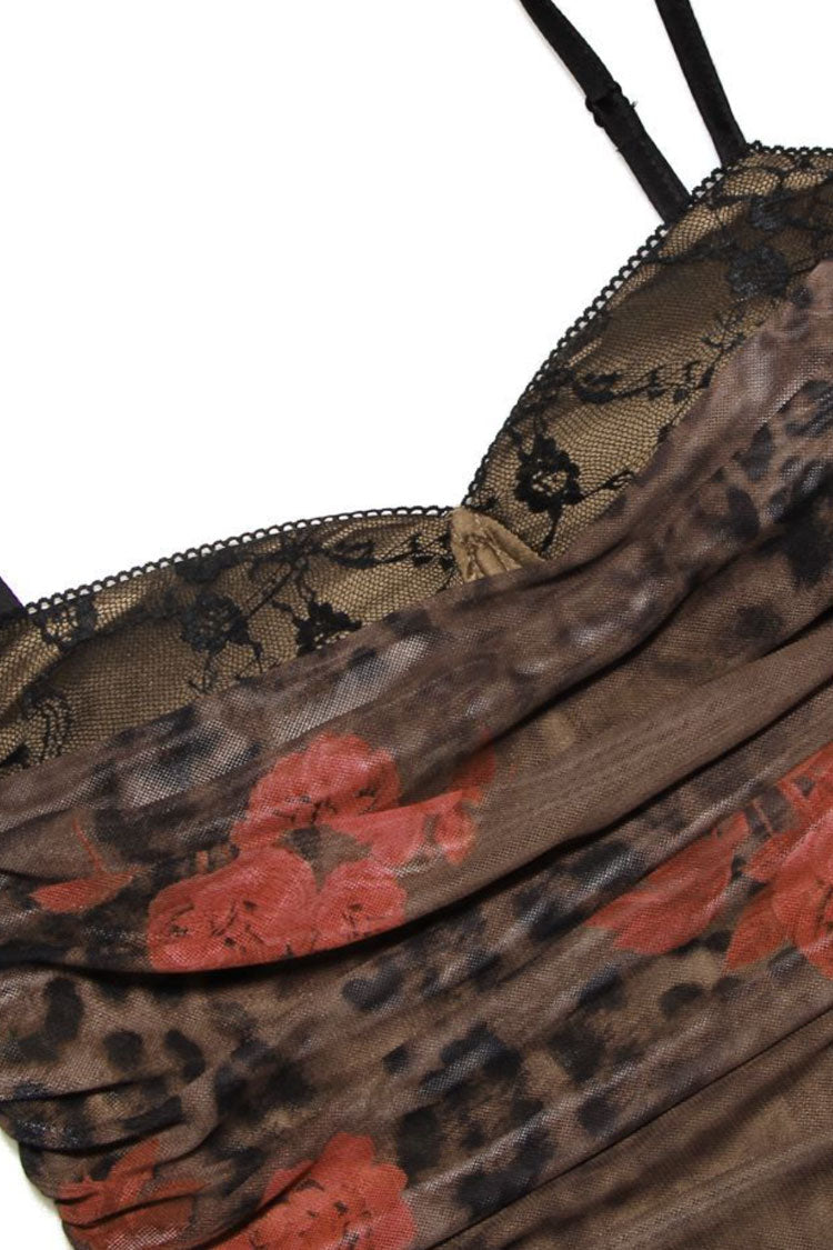 Feminine and effortless chic floral printed dresses are perfect for summer or warm-weather parties. Made of stretchy mesh fabric. this vintage style floral printed maxi dress strikes a nice balance between elegant and sexy for women in spring and summer. Designed with a darling scalloped trimmed sweetheart neckline with padded cups. adjustable spaghetti straps on the shoulders. a bodycon silhouette patterned with blooming floral motif print and wild style leopard print. a hidden zip closure at back. and a long dress cut with a back slit for easy movement. this comfortable mesh maxi dress in our boutique is feminine and will photograph beautifully. We can't help but picture this stunning outfit at your next cocktail party.