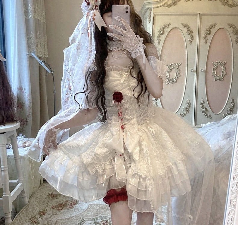 Become their spooky bride with this Gothic Princess Bride Costume Set!