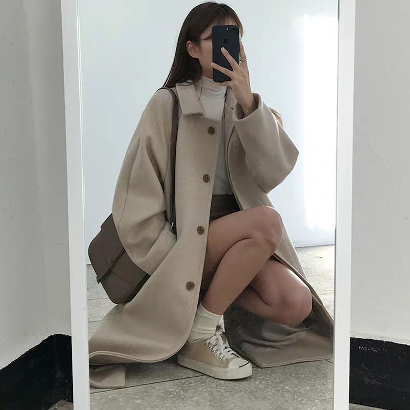 Stay warm this winter in this simple but classic Mid-Length Single-Breasted Coat!