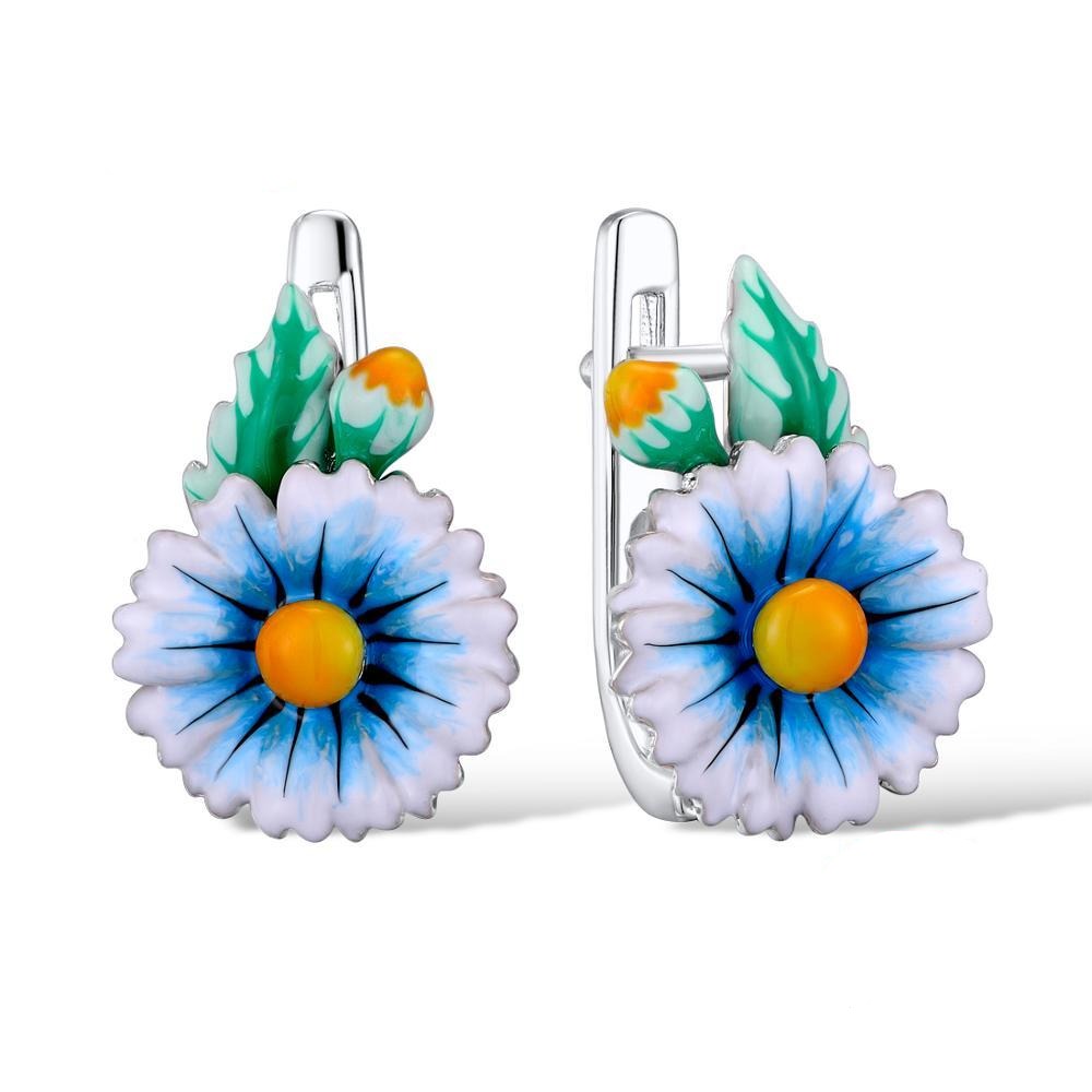 Design: Handmade Silver and Enamel Daisy Flower Drop Earrings