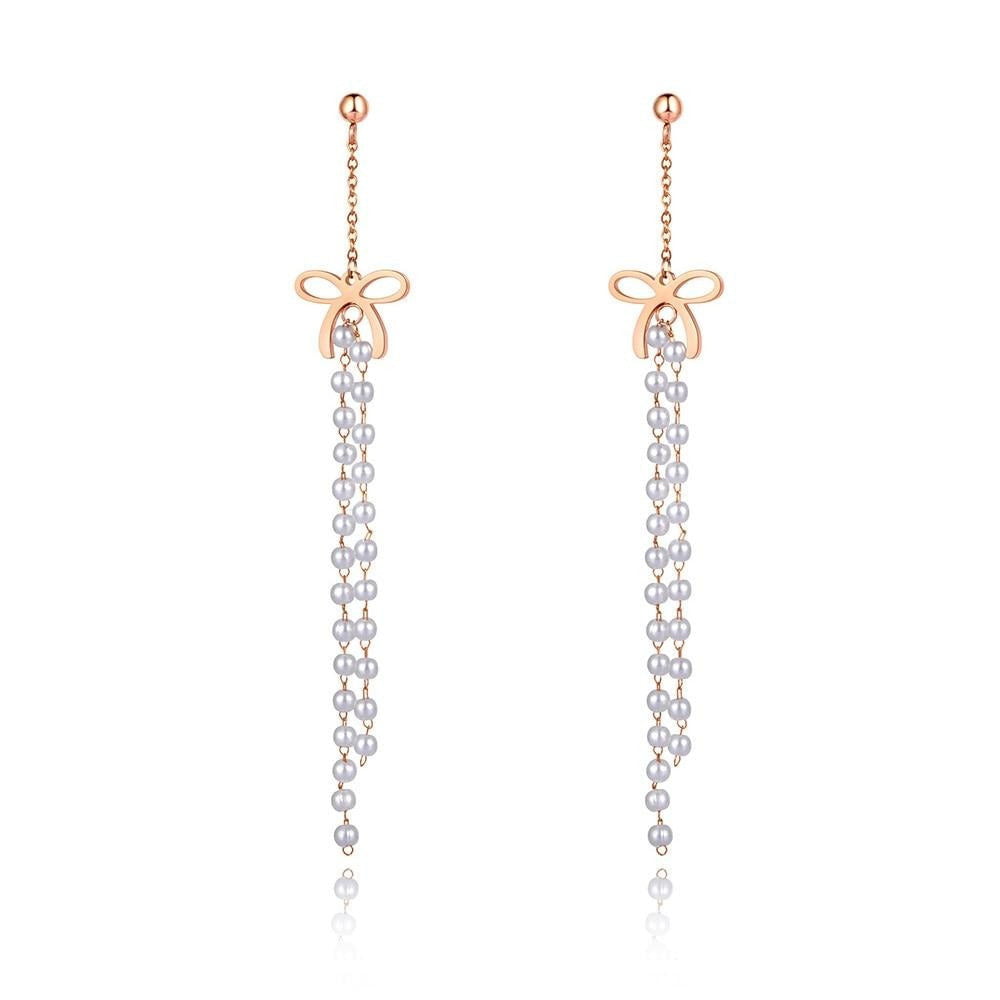 Design: Bow and Pearl Tassel Dangle Drop Statement Earrings