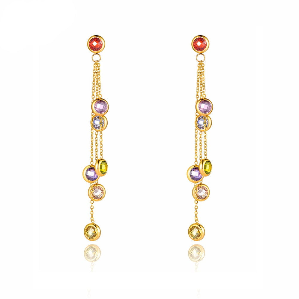 Design: Round Crystals on a Chain Tassel Dangle Drop Statement Earrings