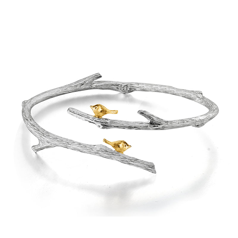 Design: Handmade Birds on a Branch Adjustable Bangle Bracelet