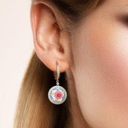 Design: Handmade Silver and Enamel Cherry Blossom Flower Drop Dangle Earrings