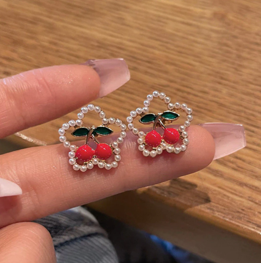 Look stunning and show off your unique style with these pearl cherry flower earrings. The beautiful flower design made out of pearls surrounds a cute cherry charm that Is sure to make a statement and turn heads! Be as stylish as a cherry on top of a sundae! 🍒