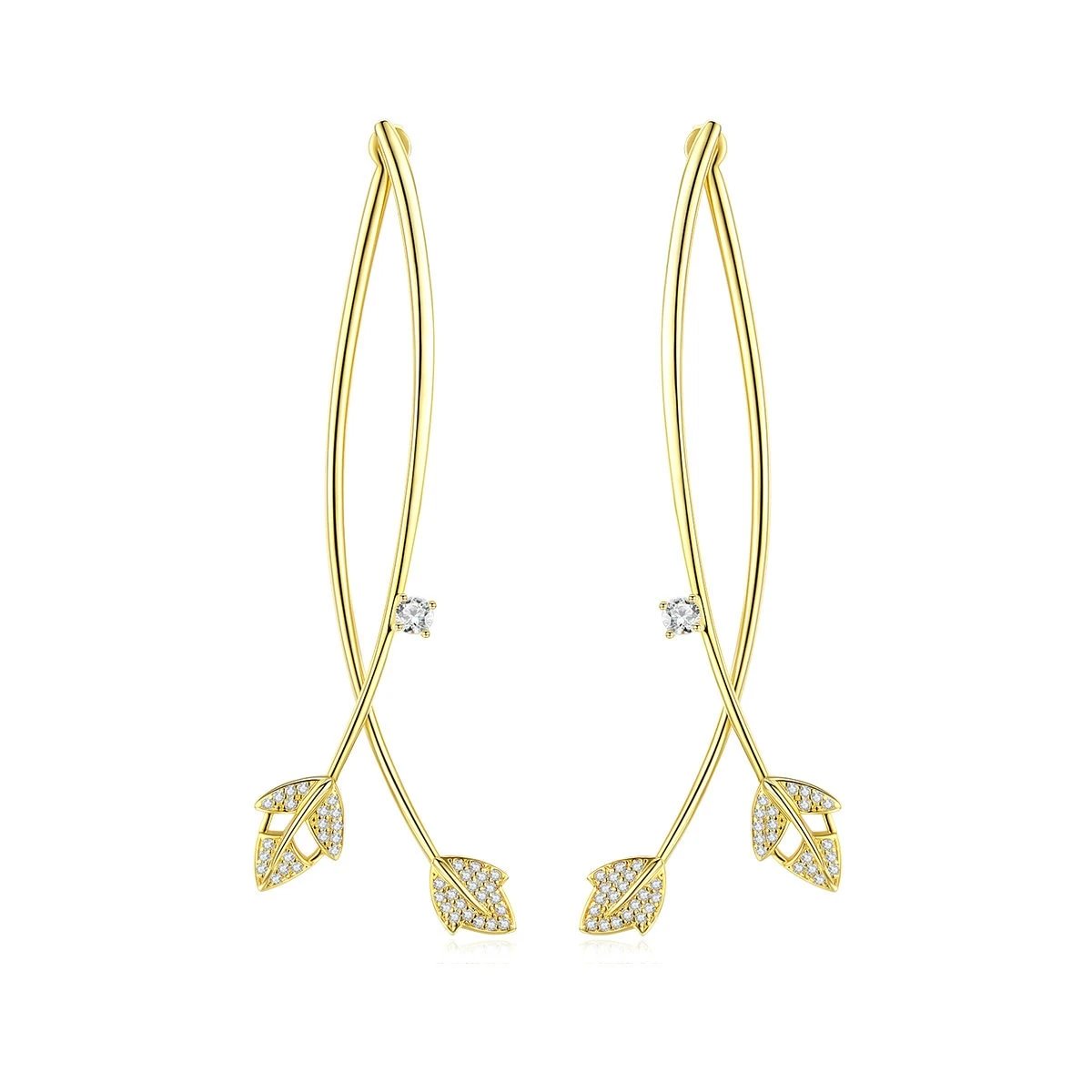 Design : Feuille de cristal. Boucles d'oreilles pendantes longues en forme de feuilles sur une branche
