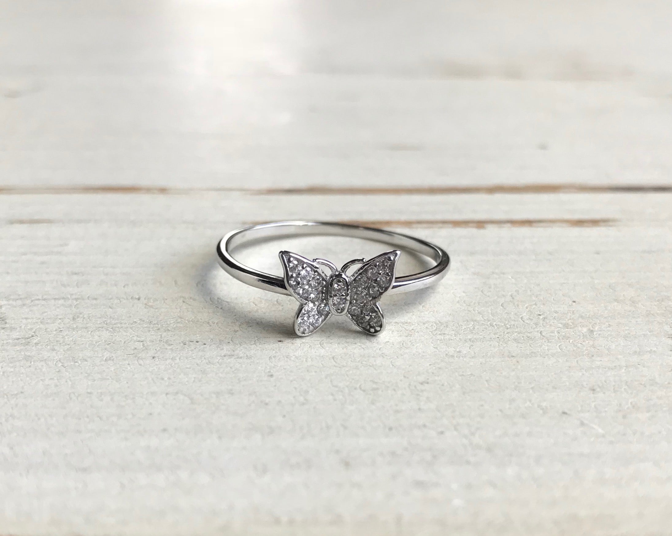 Bague en argent sterling 925 et plaqué or 24 carats avec papillon en cristal