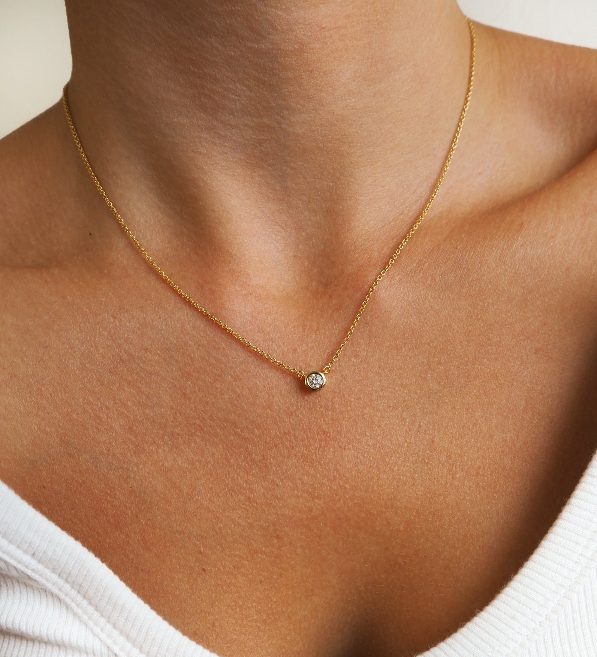 Collier délicat en plaqué or 18 carats avec lunette solitaire en cristal plaqué or