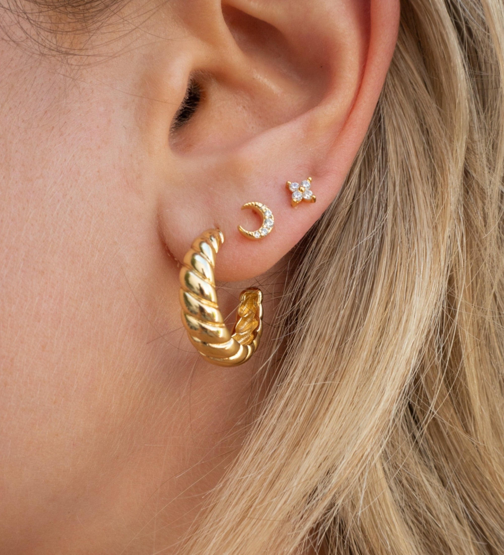 Créoles torsadées dorées légères avec tige hypoallergénique