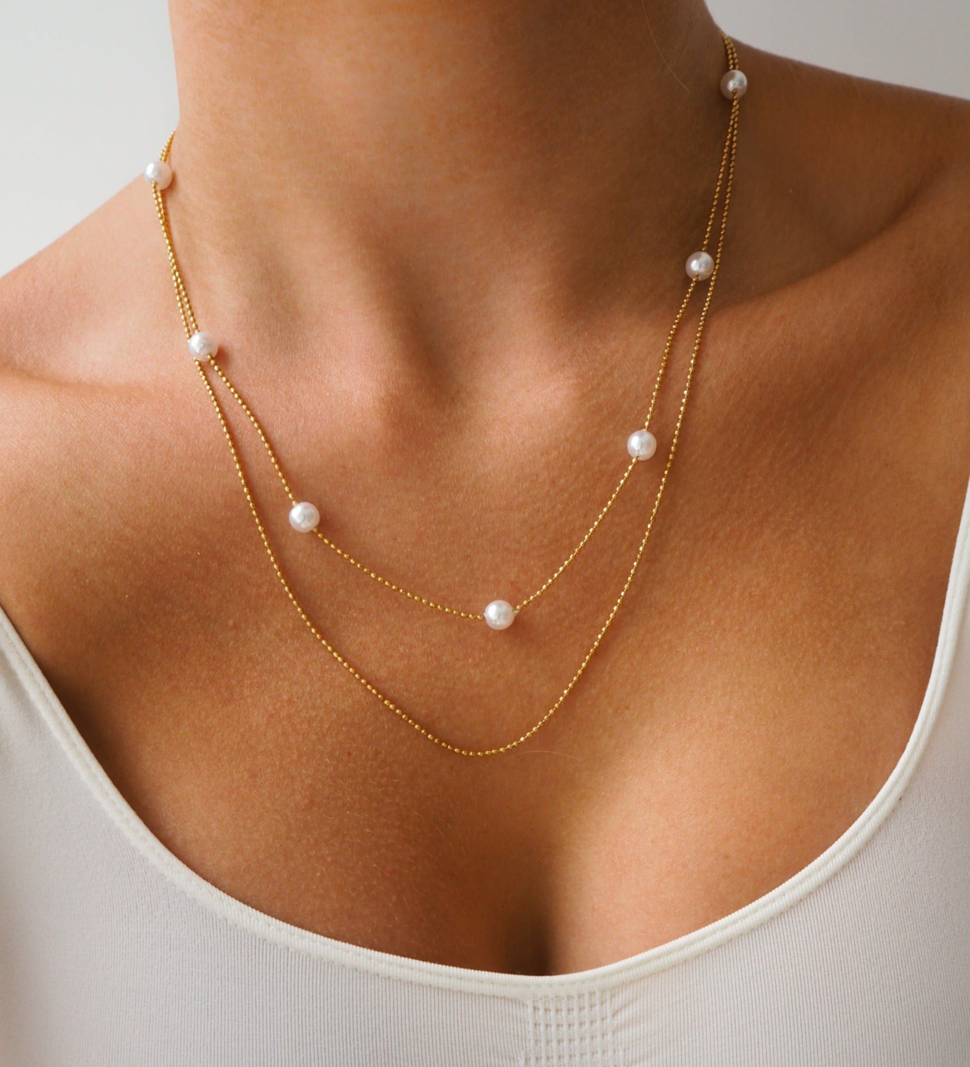 Collier à chaîne à billes en or à double couche avec perles nacrées