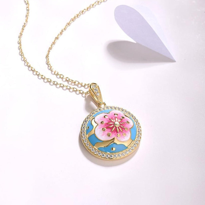Conception : Pendentif en forme de fleur de cerisier en argent et émail fait à la main (collier non inclus)