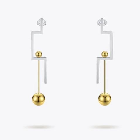 Design: Geometrical Shapes with Hanging Ball Drop Dangle Statement Earrings