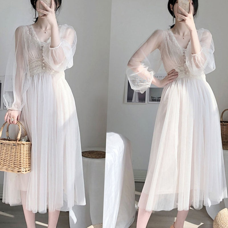 You'll light up the room when you step in with this Elegant A-Line Button Puff Sleeve Dress!