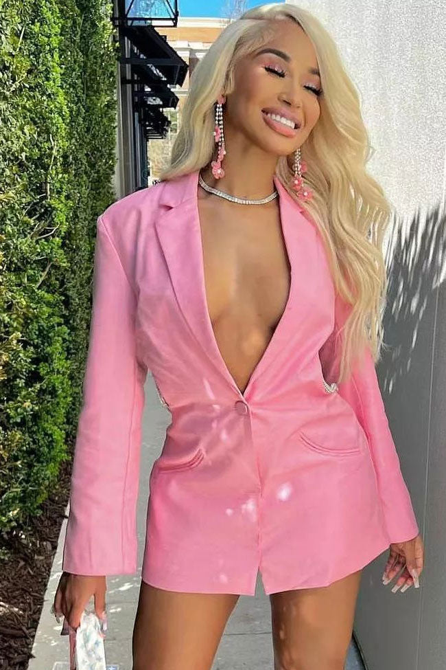 Sparkly Rhinestone Rope Cutout Back Lapel Blazer Mini Dress - Pink